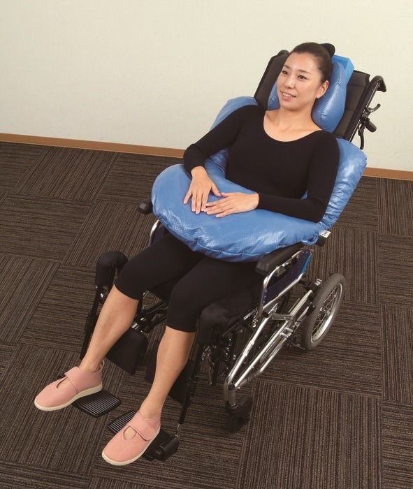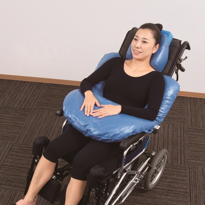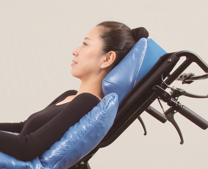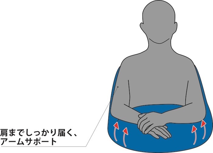 長いアームで肩や腕の荷重を支えて、首や肩の緊張を緩和、嚥下を楽にします。