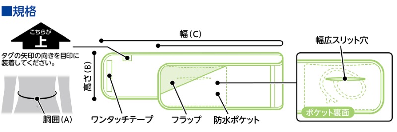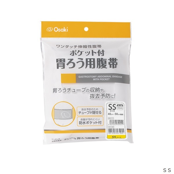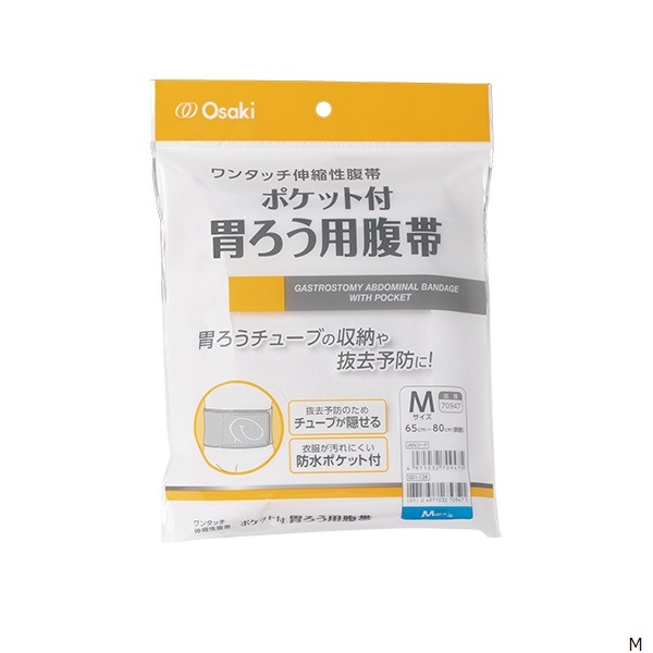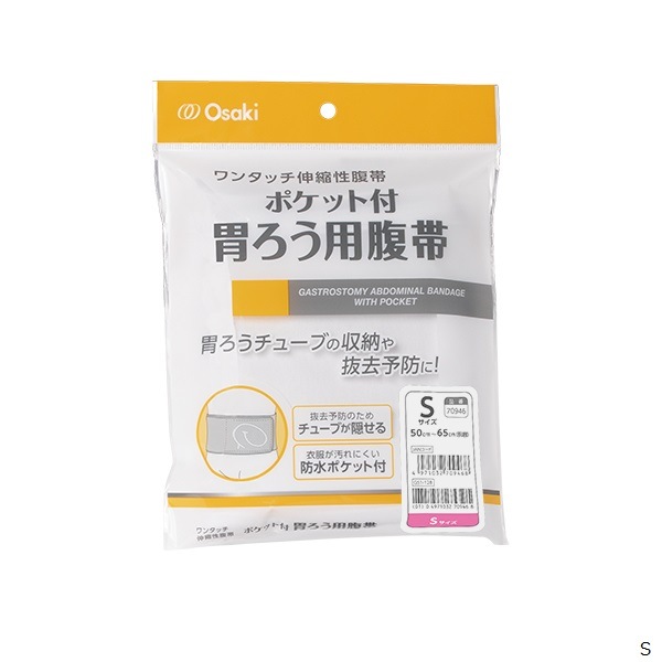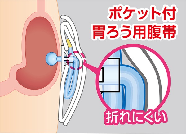 胃ろう造設術後の事故(自己)抜去予防に適した防水ポケット付き伸縮性腹帯です。