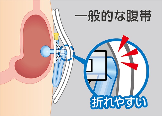 腹帯がズレても挿入部が引っ張られにくく、抜去予防につながります。