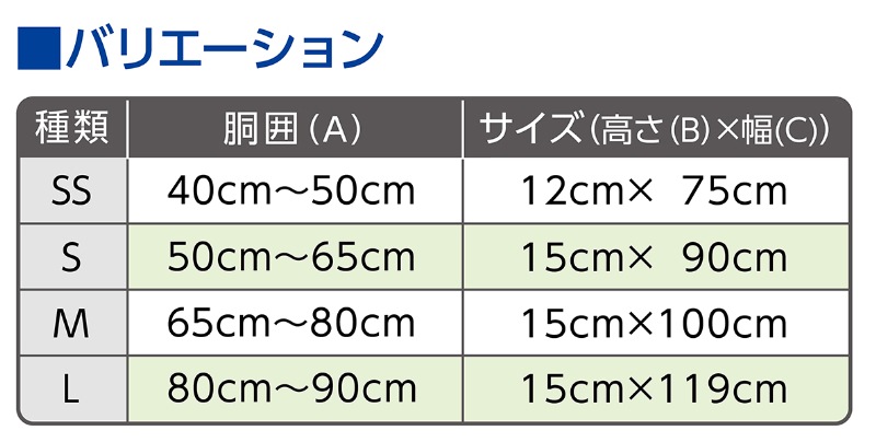 外部ストッパーに圧がかからず折れにくくなっています。メーカー品番 SS:70945 S:70946 M:70947 L:70948 サイズ等規格 ①胴囲 ②高さ×幅