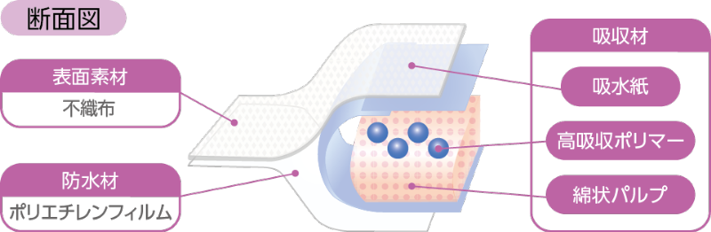 ダイヤ柄プレスが血液や体液などを拡散させ、より効率的に吸収します。