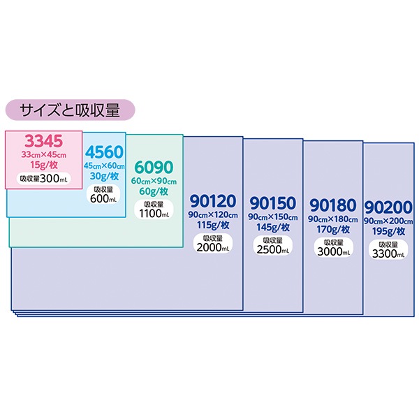 品番 種類 サイズ 入数 84268 3345 33cm×45cm 100枚入 84255 4560 45cm×60cm 50枚入 84256 6090 60cm×90cm 30枚入 84262