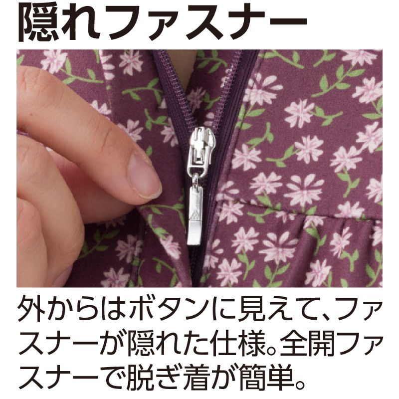 全開ファスナーで脱ぎ着が簡単。