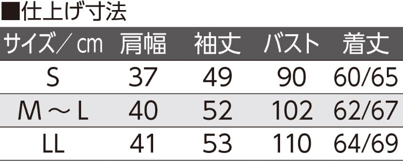 赤パープル S:821445-24 M-L:821445-21 LL:821445-23サイズ等規格 ①肩幅 ②袖丈 ③バスト ④着丈