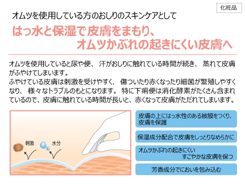 はっ水、保湿で皮膚を守り、オムツかぶれの起きにくい皮膚へ。