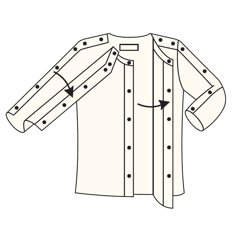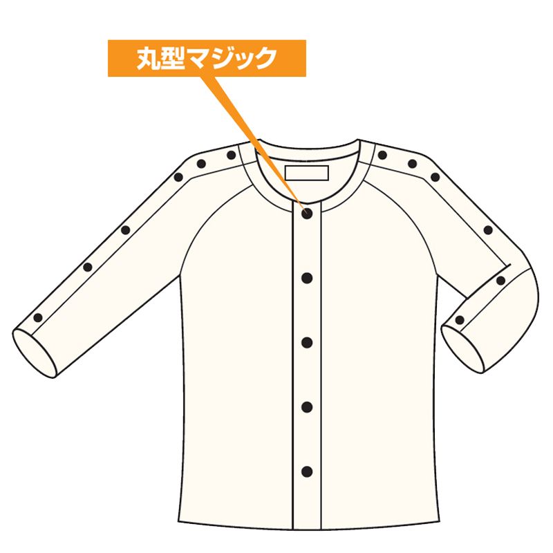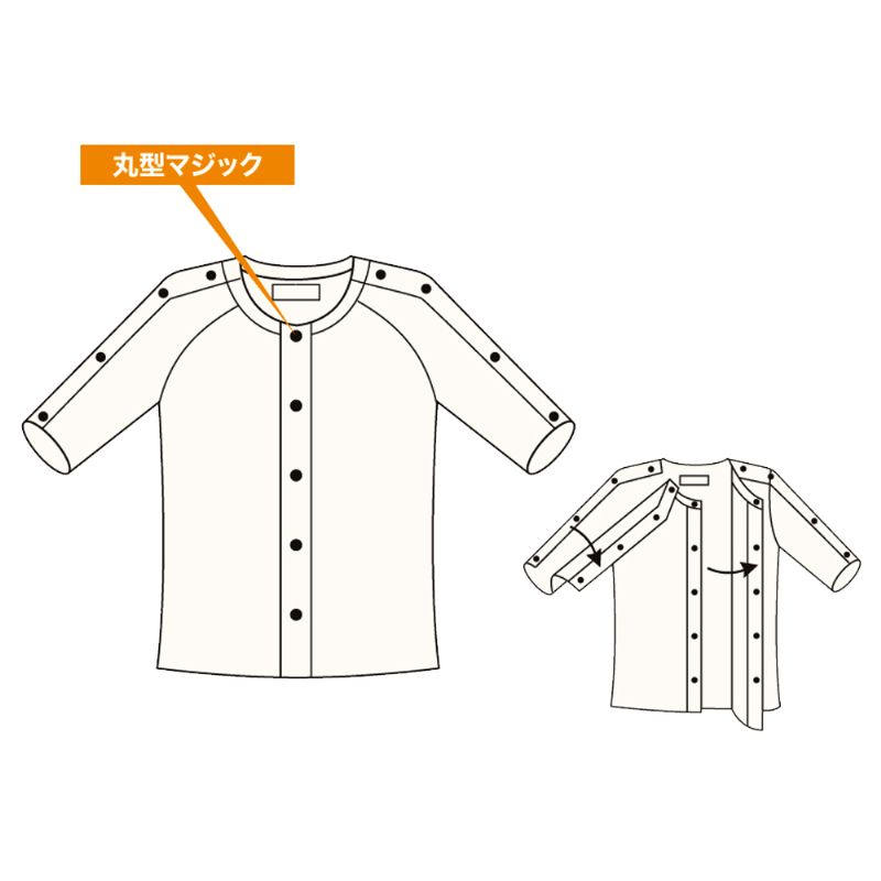 腕、肩の骨折、打身の治療中の方や診察、点滴、透析時などに便利です。紳士用7分袖。