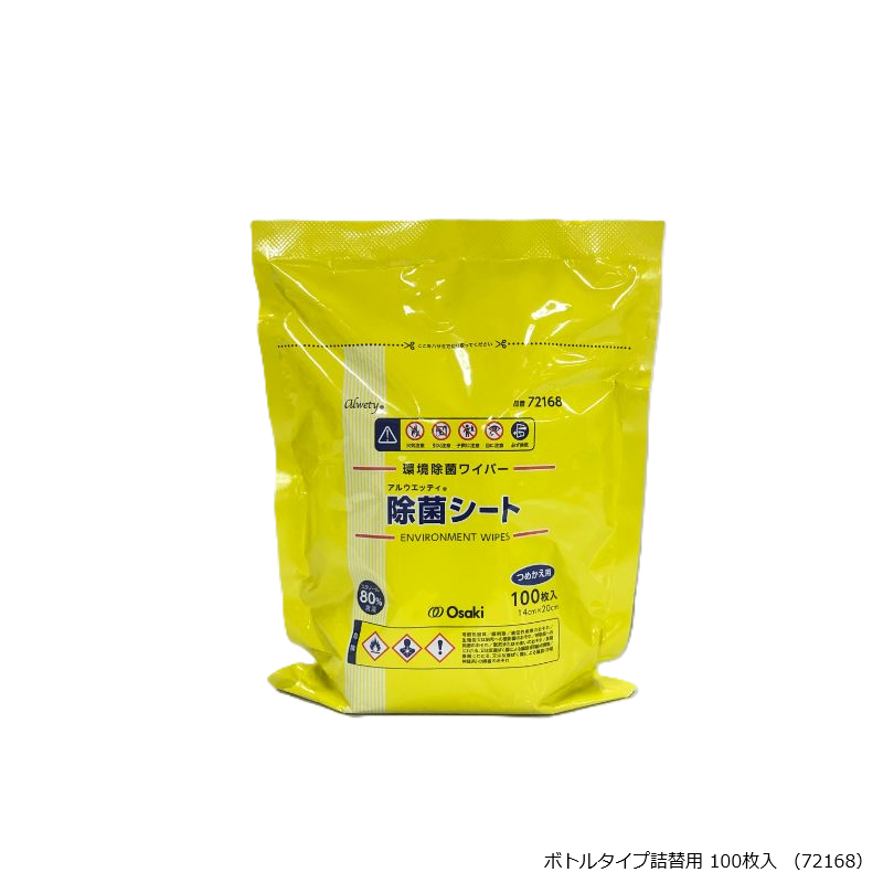 不織布にエタノール80%を含浸させた環境除菌ワイパーです。