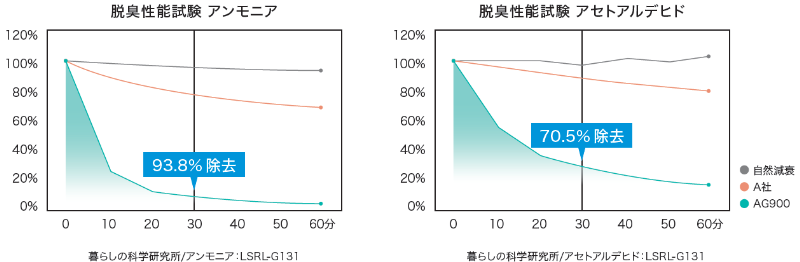 2.2つの脱臭性能比較試験で圧倒的な脱臭性能を証明。